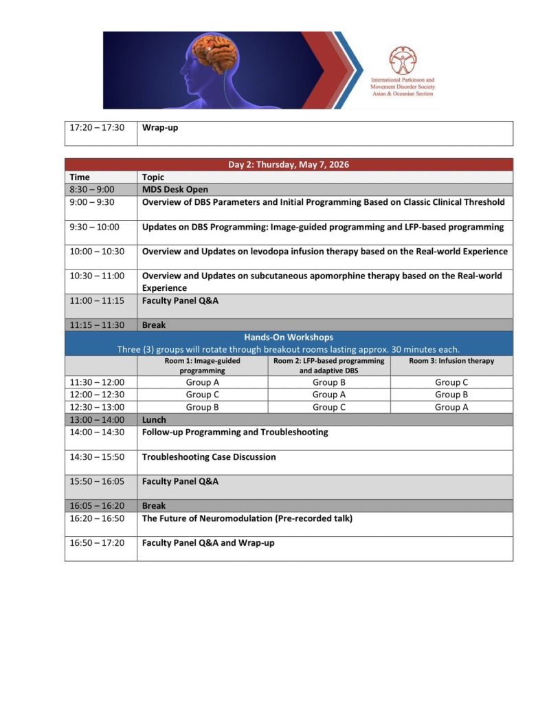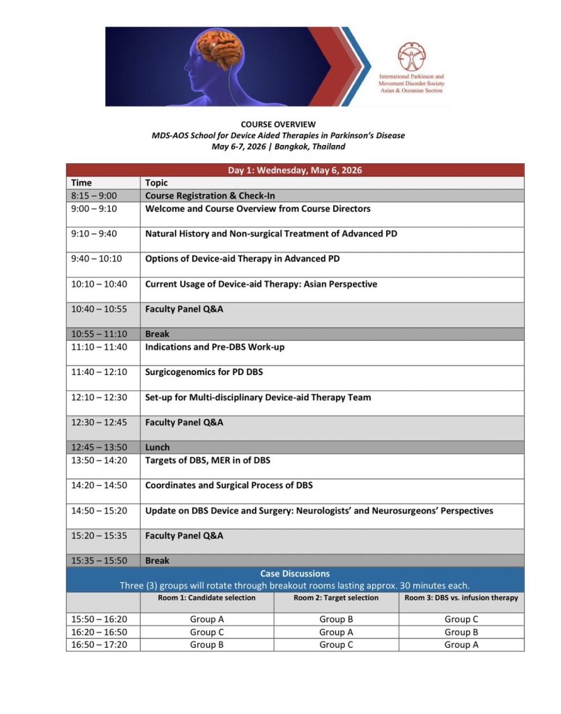 คอร์สเรียน Deep Brain Stimulation and Infusion Therapies โดย International Parkinson and Movement Disorder Society – Asian and Oceanian Section (MDS-AOS) 6-7 พฤษภาคม 2569 โรงพยาบาลจุฬาลงกรณ์ กรุงเทพมหานคร ♥️